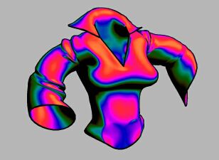 In this example, the fill color is blue-ish. It shows as the top 'specular' highlights, e.g. on the arms and shoulders and around the neck. |