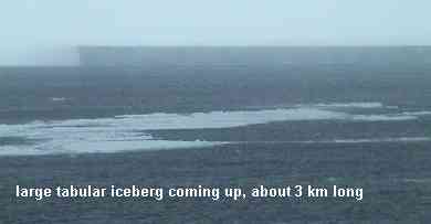 large tabular iceberg, 3 km long! ![]() ![]() ![]() see the haze in the air? see the white caps on the rough waters? and to think they call this the start of the summer season :-) |
